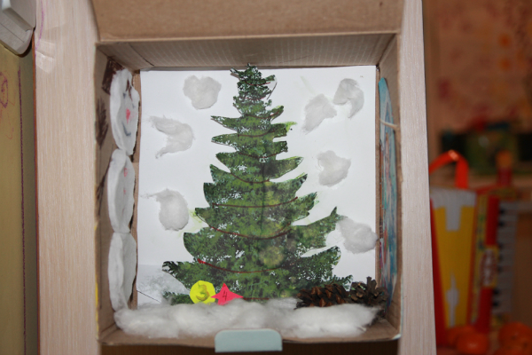 Утром дед Мороз оставляет подарочек Дане- а Даня должен украсить ёлку новогодней игрушкой.. так мы считаем дни до нового года. И когда на верхушке будет звезда - значит урааааааа Новый год!