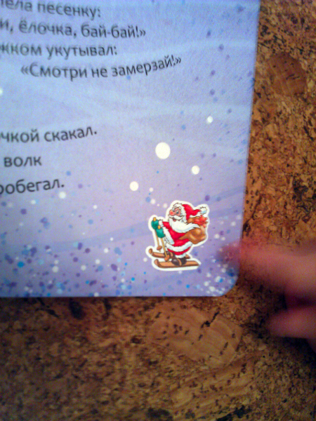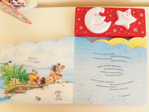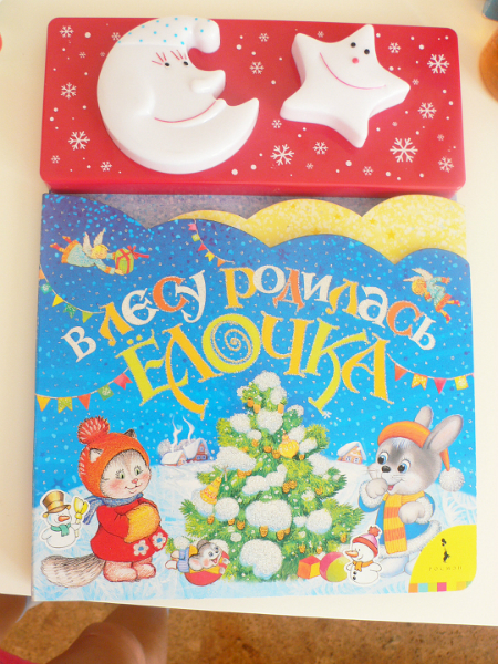 Вот к этой книжке я прикупила наклейки. Книга музыкальная, играет песня - в лесу родилась елочка. Правда не полностью.. Не могли, что-ли, спеть до конца? =(
