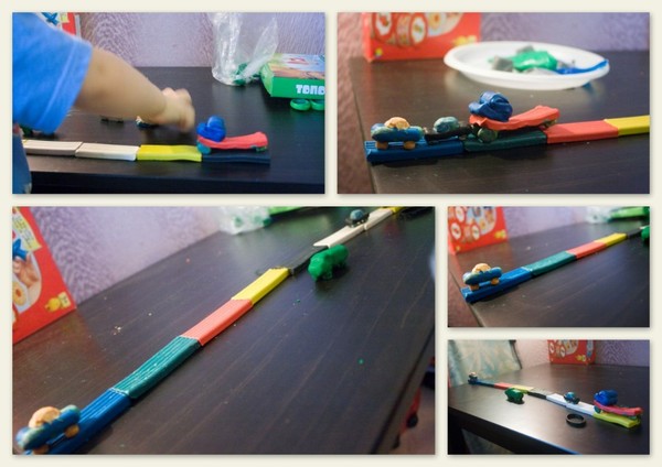 Достала коробку с пластилином. Лепить мне не хотелось. Просто потавила и все. Дима попросил слепить машину. Взяла кусок пластилина, сижу мну.. Дима начал рыться в коробке, достал новую пачку пластилина и стал строить сначала гору, пока бегала за фотоаппаратом, от горы осталось вот , что