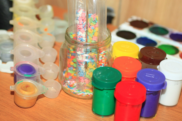 у нас была гуашь jovi, обычная посыпка))) и золотая краска из набора crayola