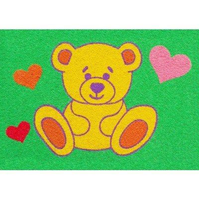 Работа с песком очень полезна для ребенка, т.к. развивает моторику, благотворно влияет на психику, присутствует эффект арт-терапии, благодаря большому разнообразию используемых цветных песков в создании открытки.