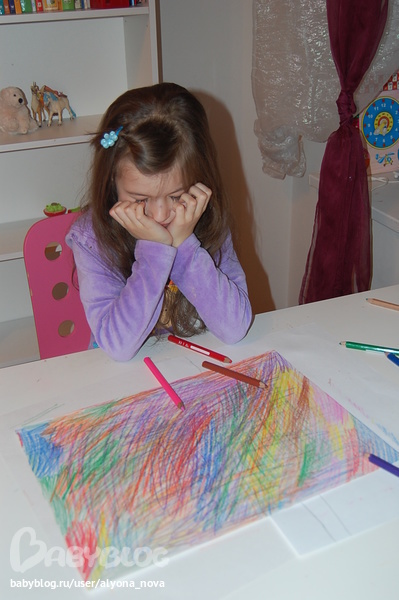 Сначала Ариша заштриховала лист цветными карандашами. Принялась за дело с энтузиазмом: