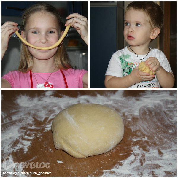 Кстати тесто получается отличное для работы маленькими детскими ручками. Не прилипает, не рассыпается, не тугое и при этом тягучее.
