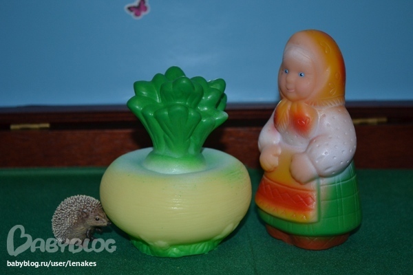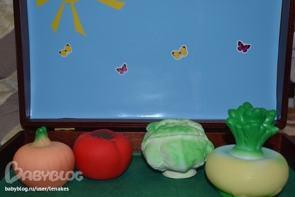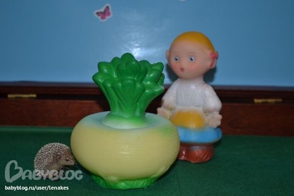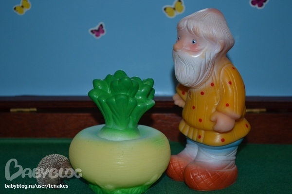 И был у них огород, и росли там капуста, свёкла, морковка и даже репка. (у нас лук, помидор, капуста, ну и другие овощи с резинового набора)