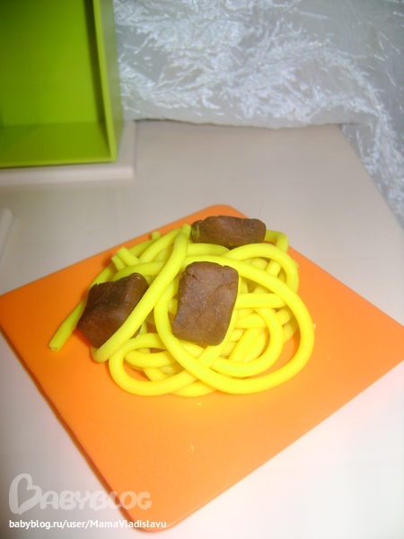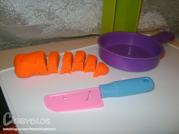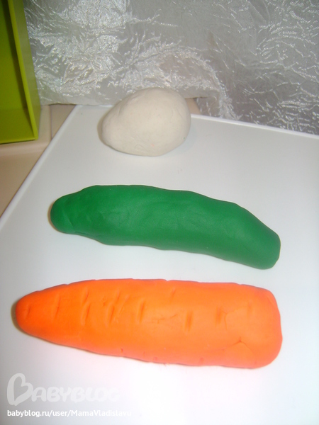 Мистер Умелец или Очумелые ручки (поделки, аппликации, интересные находки, идеи и задумки)Так и не дождавшись деревянных продуктов для нарезки на липучках,решили быстренько приготовить продукты из пластилина-было очень увлекательно,я лепила а дочка нарезала))))