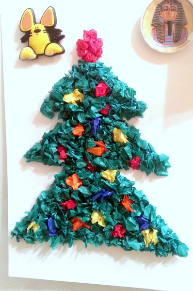 Елочку из комочков парпиросной бумаги подарим прабабушке.