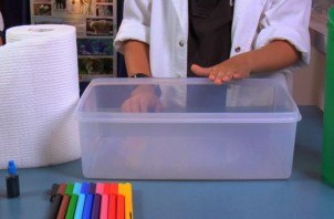 Для шоу вам понадобится бумажные полотенца, маркеры или красители, прозрачные баночки и вода.