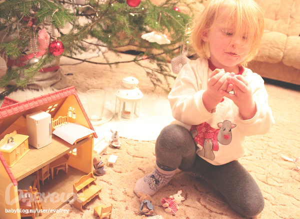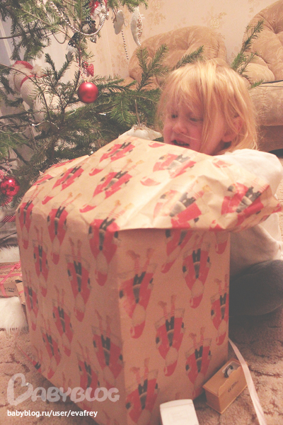 Сколько было писку-визгу от увиденных коробочек под елкой! Разрывала их Милка так суетясь и волнуясь)) Это ведь не просто игрушки - это подарки от волшебного Санта Клауса!
