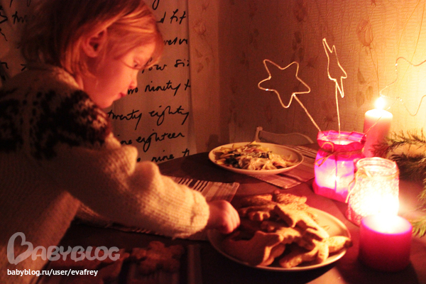 Праздник к нам пришел (Игры в День Рожденья, Новый год, 8 марта и.т.д.. А так же чем занять нескольВот и встретили мы Рождество! Ура)) Теперь мне можно вздохнуть с облегчением... По правде говоря, я уже устала за полтора месяца подготовки. И вот наконец-то день, ради которого затевалось все это настал. Конечно же я не успела доделать всего что запланировала, но уж как есть, потому что в противном случае я бы сама и не ощутила настроения праздника, загнавшись в домашних хлопотах, а для меня очень важно это чувствовать, чтобы передать свои чувства Милке. Весь день мы конечно же убирались, наводили порядок к приходу Санты, доделывали некоторые элементы декора на нашу елочку, а вечером конечно же пекли имбирное печенье, жарили гуся, зажигали свечи слушали рождественскую музыку... Все это было так уютно, на самом деле))) Рождество это наверное, самый великолепный праздник для семьи, для того чтобы его отпразновать с потрясающими запахами на кухне и замечательными песнями. Потом Милка танцевала, утверждая что она балерина)) и выдавала такие смешные перуэты) А когда на часах было уже около 12 Милка отнесла Санте под елку теплое молоко и имбирное печенье которое она так старательно пекла.