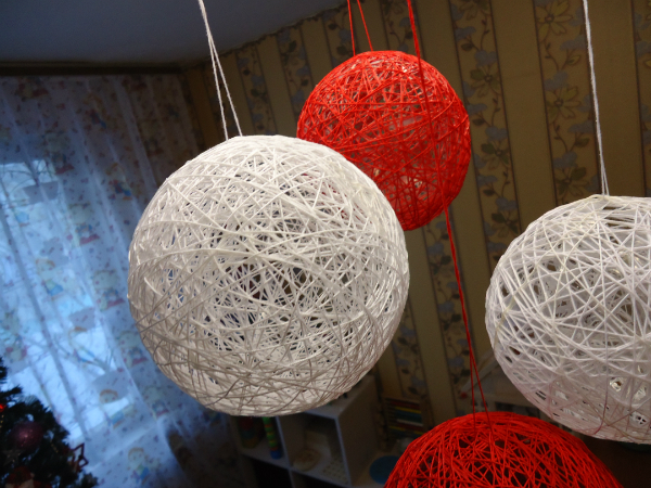 еще смастерили такие шары,давно я на них глаз положила!Лера активно помогала маме
