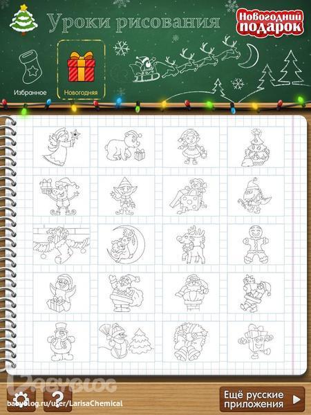 При помощи второго приложения ваш малыш научится рисовать и раскрашивать новогодние картинки.