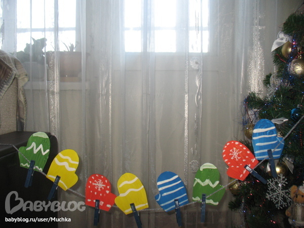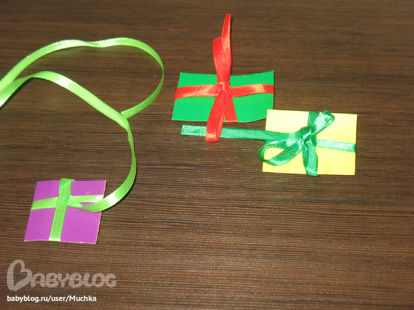 9. Подарки готовы. И Дед Мороз почти готов. Только варежки все перепутал, надо разобрать их по парам))) Разобрали, потом вспомнили, что шуба у Деда Мороза красная, значит и варежки должны быть красными. Положили их в волшебную коробочку, а она их Деду Морозу доставит)