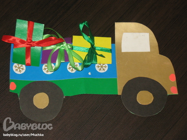 8. Новый год все ближе, и Дем Мороз уже начинает собирать подарки. И помогают ему в этом конечно машинки (у нас по другому быть не может, Лера очень любит машинки - любые!), которые перевозят подарки от фабрики Деда Мороза к волшебным саням . Но одна машина подарки растеряла. Надо помочь ей найти подарки и погрузить их обратно. "Подарки" прятала так, чтобы ленточка немного видна была