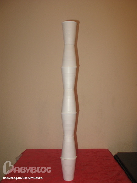 возводили башню-крепость (строили вместе, самая высокая получилась из 10 стаканчиков, если больше падает