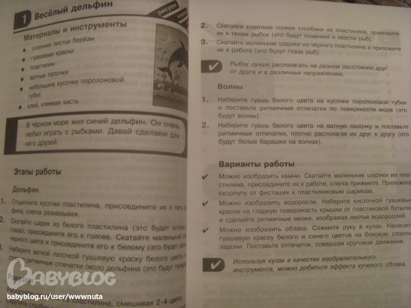 Вот только вопрос: как бы организовать работу так, чтоб это было по максимуму свободное творчество (то есть не указывать, вот давай здесь из пластилина камни слепим, а тут рыбок приклеим, а предлагать), но при этом, чтоб не получился хаос (то есть без направления у меня дочка, например, может просто лист кругами закрасить, но ведь так свободно порисовать можно и на простом листе). У кого как происходит? Поделитесь.