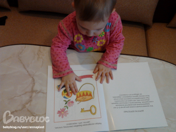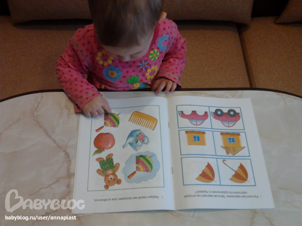 Некоторые книжки Маша изучала с конца, поэтому и заданяи мы выполняли не по порядку. Но Маша справлялась со всем. Так интересно наблюдать: она рассматривает, водит глазками по кратинке, ищет, думает - и выдает правильный ответ! :))