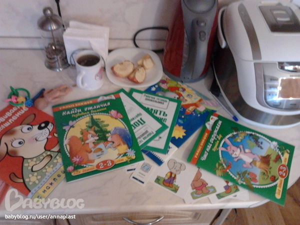 Особо хочу сказать: после каждого задания мы устраивали переменки - пинали мяч, играли в футбол, танцевали, слушали музыку, читали сказки. То есть уходили с кухни, чтобы сменить обстановку и поменять род занятий. Иначе Маша уставала очень, сразу рассеивалось внимание, начинала проситься на ручки. А после переменки с радостью выполняла новое задание:)