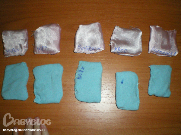 Сшила мама мешочки с парными запахами голубые х/б и розовые шелковые.