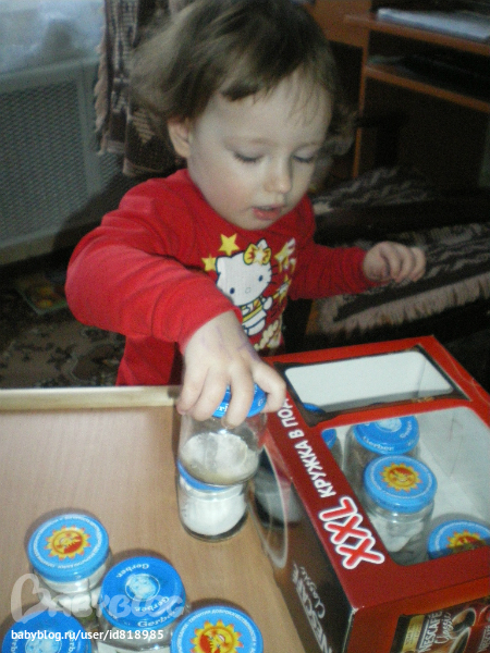 Сначала мы пошли на кухню,открыли шкафчики и принялись нюхать крупы, приправы,чаи,кофе,растительные масла.Ребенок в полном восторге!Раньше сюда лазать не разрешали,а тут мама сама все показывает...Чудо чудесное!!!