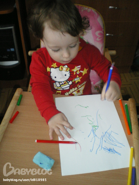 Ассоциативое рисование.Варенька нюхала мешочек с ромашкой,а потом рисовала фломастерами))