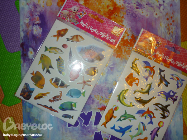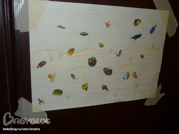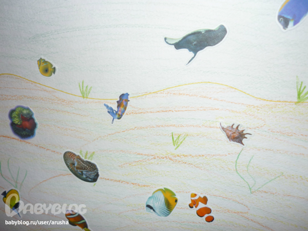 А это фон - рисованый, морское дно. На нем рыбы - наклейки. В ашане купила за 18 рублей. ...Покупайте и импровизируйте...
