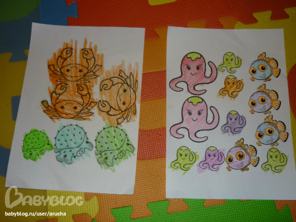 Фотки выпали вразброд. Это распечатано на принтере - морская тематика - раскрасили, вырежу и будем клеить на лист.