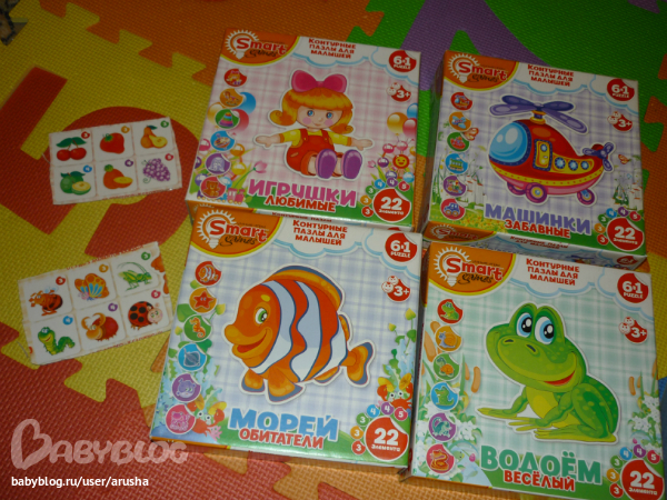 Вот эти пазлы очень мне нравятся - купила много... тут не все что есть (на 70 рублей) Яркие, крупные, из 3, 4 и 5 частей.