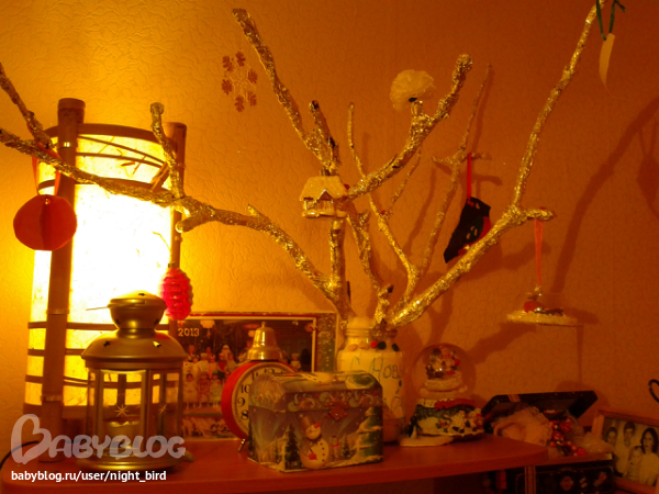 чет не сфотала блже пделку, ветки обернули фаольгой и сделал игрушки9снегирь, синица, стеклянный шар и бумажнй шарик,плюс повесили просто игрушки и украсили банку пластилином и надписью - старались максимальноделать все сами). И вот расставаться с поделкой не охота, точнее с праздником. Сновым годм,в общем)))))))))))))))))))))))))))))))