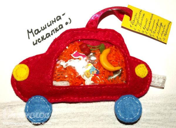 Спасибо !!!!! Необходимо ребенку называть ирушку, которая есть в машинке, а он должен ее отыскать.Например : " Тима, найди клубничку!". А он с помощью пальчиков, ворочая, жмякая должен найти клубничку среди прочих игрушек и риса.