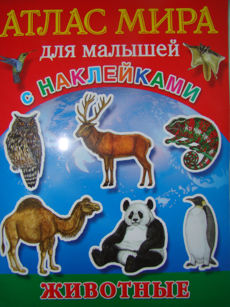 3) Клеили животных в «Атлас Животных для малышей». Кстати, очень хорошая вещь, стоит совсем не дорого (чуть больше 100 руб.),