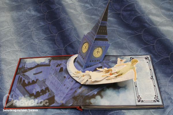 Отличные панорамки, но они - не главное достоинство этой книги. Главное - при открытии каждой панорамы раздается очень красивая фоновая настроенческая музыка, под которую очень приятно читать книгу. Перевод хорош, хоть и со значительными сокращениями. Я, правда, все равно сильно меняю текст, когда читаю сцену, про то, как Динь-Динь подставила Венди и сказала мальчишкам ее застрелить :). Все остальное - в принципе без нареканий. Эта книга читается КАЖДЫЙ день перед сном (по одной главе, плюс я читаю и другие сказки, но Питер Пэн - обязателен), и если Соня не хочет спать, она говорит: "Мама, можно я один разочек посмотрю книжку и сама уберу",я ухожу, а Соня сама смотрит, потом убирает, выключает свет и ложится спать.