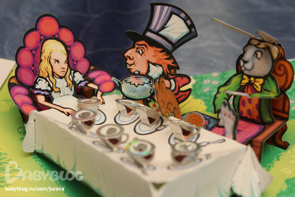 3. Из той же серии "Алиса в стране чудес". Стильная книжка, ничего не скажешь. Правда, в ней 2 очень крупных недостатка. Во-первых,ужасный перевод (вместо гусеницы, например, слово "куколка", то есть шла Алиса и встретила куколку.... и объясняй, таких примеров можно привести довольно много). От Кэролла там осталась только сюжетная линия, а она не главное достоинство этого произведения. По мне так самый смак там именно в словах, каламбурах и т.д. И во-вторых, ну зачем делать такое злобное лицо у Алисы.