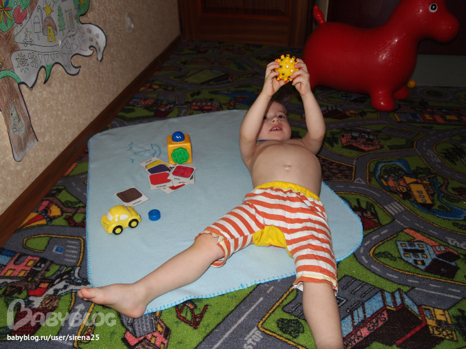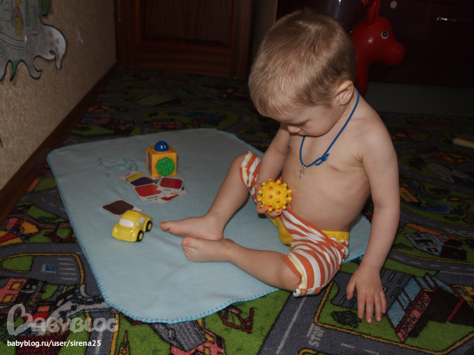 Утром пока я готовила завтрак, разглядывал карточки с цветами и делал себе массаж желтым мячиком.