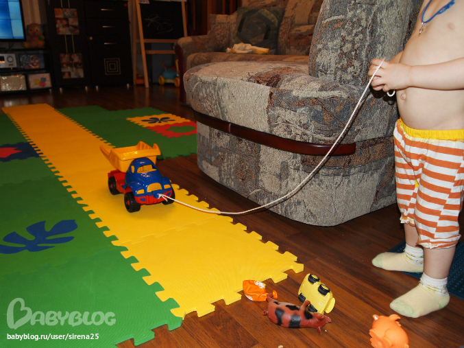 Так понравилось палочки собирать, складывать и по дорожке возить в машине, что вечером даже не прошли на прогулку.