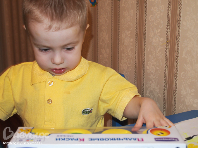 В конце дня за хорошее поведение получил в падарок новые краски.