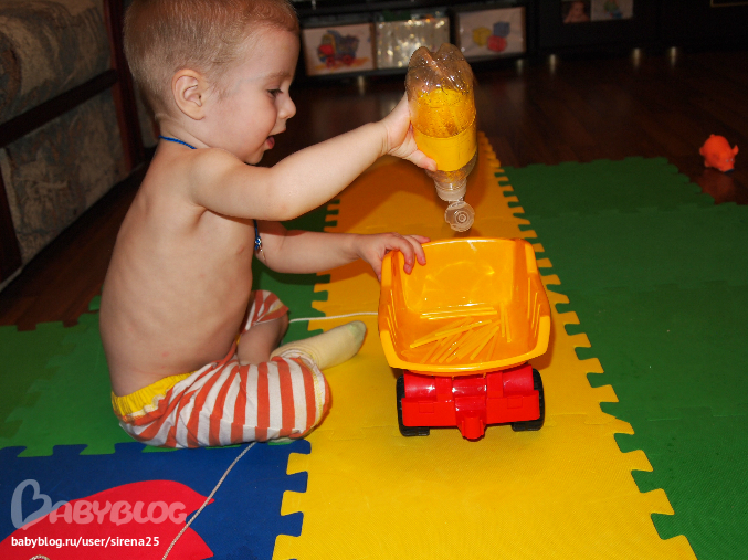 Кстати, мы с Матвеем нашли наиболее для нас подходящий продукт на котором можно тренироваться кушать ложкой. Это кукурузные палочки с молоком.