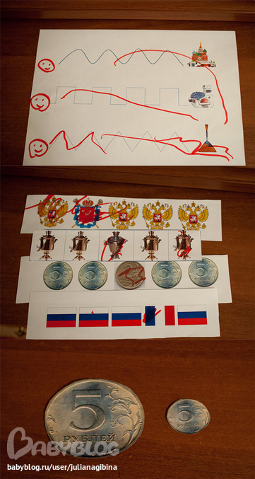 Сделали несколько заданий на проводилку, найди лишнее (там где две последние монетки нужно было разложить по размеру, но они все Сашкой заныканы для игры в магазин, нашла только две монетки) и т.п. Что то взяла из просторов интернета, что то делала сама. Ох жаль я не видела выложенных Светой http://www.babyblog.ru/user/lenta/Suvimaca файлов. Это помогло бы мне. Ну ничего, сама попрактиковалась зато в подобном сборе информации.