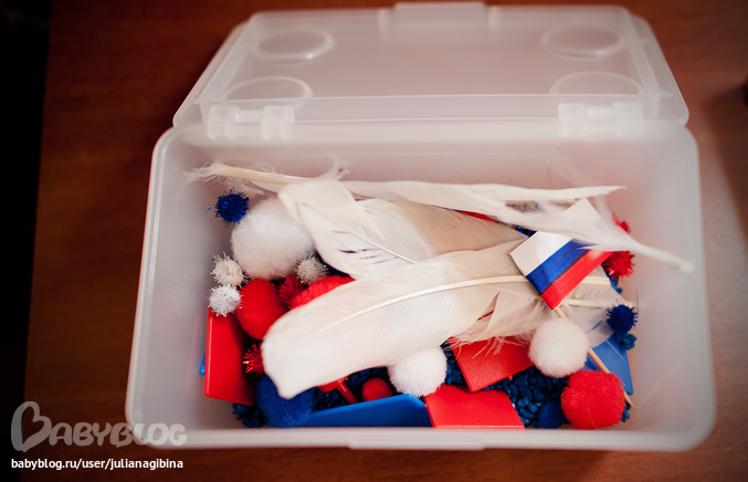 Итак, что мы делали: Хотелось конечно выложить нам (МНЕ) из окрашенных рисинок флаг. И он почти получился :)