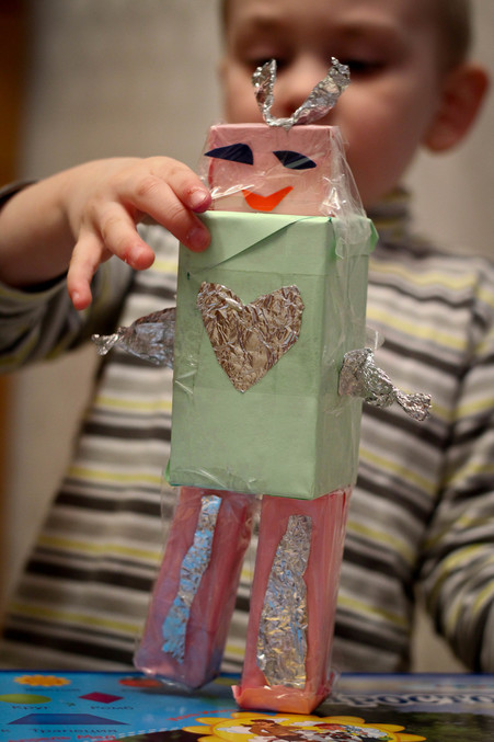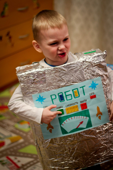 здорово как придумали!))) Творческая вы семья! Дима наверное тоже помогал придумывать снаряжение робота ?)))