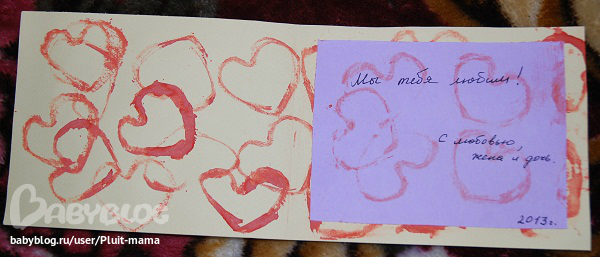 Художка ( красим, рисуем , придумываем новые способы рисовать)Задумала я вчера от нас с дочкой папе открытку нарисовать :) Вспомнила метод штамковки с помощью картонки от туалетной бумаги. Согнула в виде сердечка и поляпали мы. Чуть-чут для открытки и еще чуть-чуть для просто так - порисовать "на тему". Вот что у нас вышло: