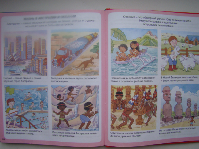 «Твоя первая энциклопедия. Чудесная планета » Одна из наших любимых книг, не только по Австралии, а в общем по географии. Здесь очень мало слов, но очень много картинок, причем рассказывается обо всем (космос, наша планета, вода, происхождение жизни на земле, континенты и т.д.) и все показано в очень доступной форме.