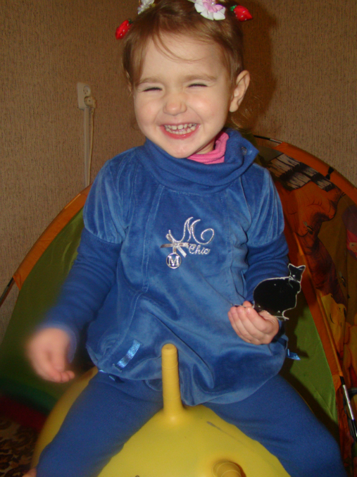 1) Кенгуру. Даша была в роли кенгуру, я ей прицепила сумку на живот, посадили кенгуренка (правда потом мы ее очень быстро сняли) и Даша прыгала по коридору, по комнате, в общем, везде… на улице Даша кричала: «Кигуу..! (Кенгуру!) и начинала прыгать. И конечно, же не обошлось без любимого – прыжки на мяче!