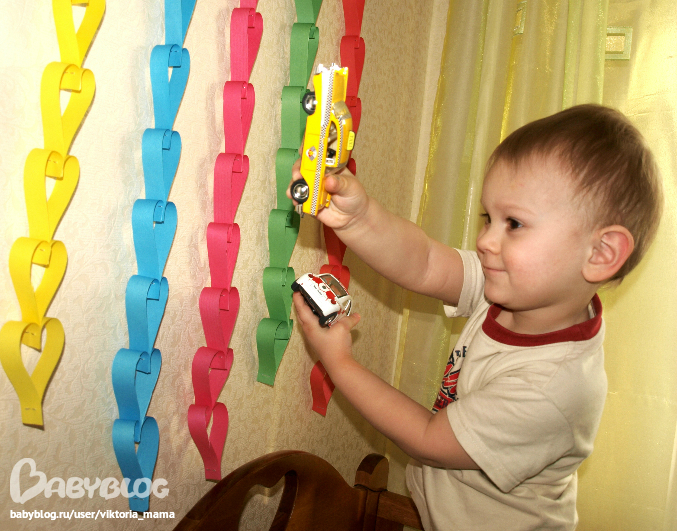 А подготовка к этому дню у нас началась заранее с украшения комнаты. Сделали с Тимой гирлянды, повесели над кроваткой подробнее здесь