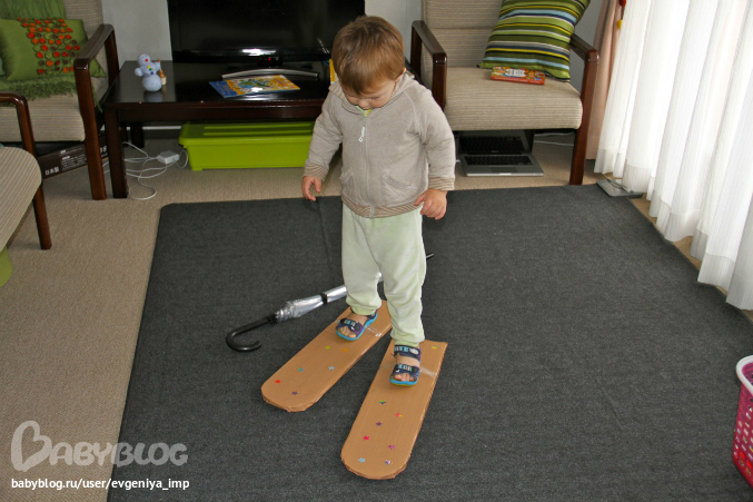Играли в прятки с папой-медведем. И даже на лыжи вставали, как Андрейка на первой странице книги.