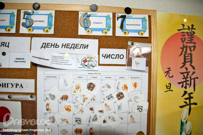 Кроме занятий по книге были и обычные. На информационной доске календарь с животными. Скачала их с кококидс.