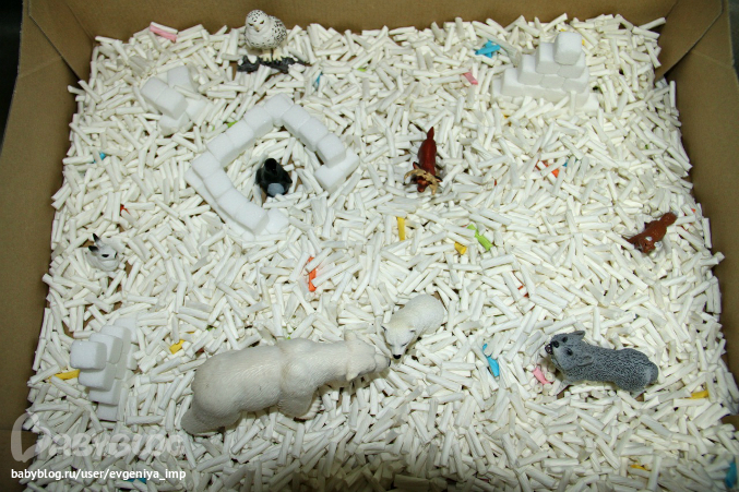 Сенсорная коробочка с героями книги. Наполнитель для хомяков и кусочки рафинада.