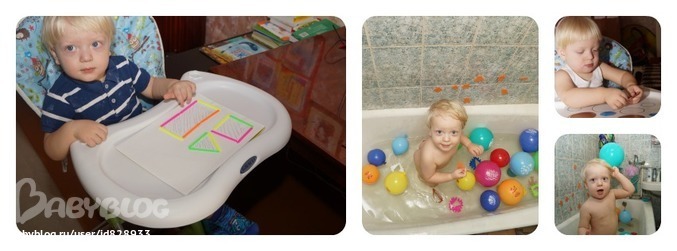 Еще мама пыталась сделать объемные и плоские фигуры из зубочисток и теста для лепки, получалось не очень хорошо, для этой цели лучше подошел бы пластилин. Составляли фигуры из счетных палочек. Купались с шариками (по моей задумке они должны были быть овальными, но получились круглыми), в шарики набрали немного воды, чтобы они не улетали. Бросались шариками, топили их, чтобы потом они с брызгами выскакивали, слушали как звучит водичка, когда попадает на них. Мы кстати купались с ними и по окончании недельки геометрической.