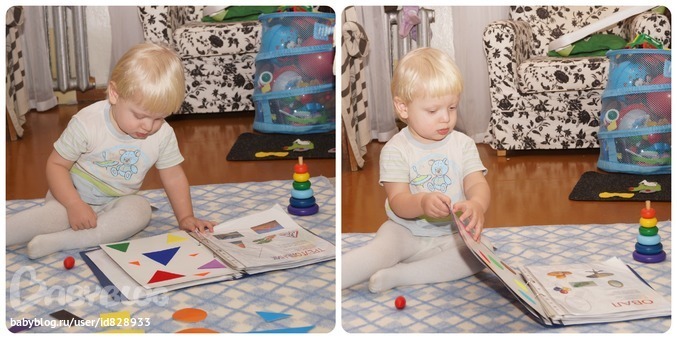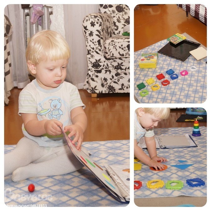 С вкладышами Степа вообще придумал классно: так как правильно вставить фигуру не всегда получается в отверстие, он перевернул основу гладкой стороной наверх и складывал фигуры на нее, при этом очень веселился, что у него так быстро и здорово выходит.