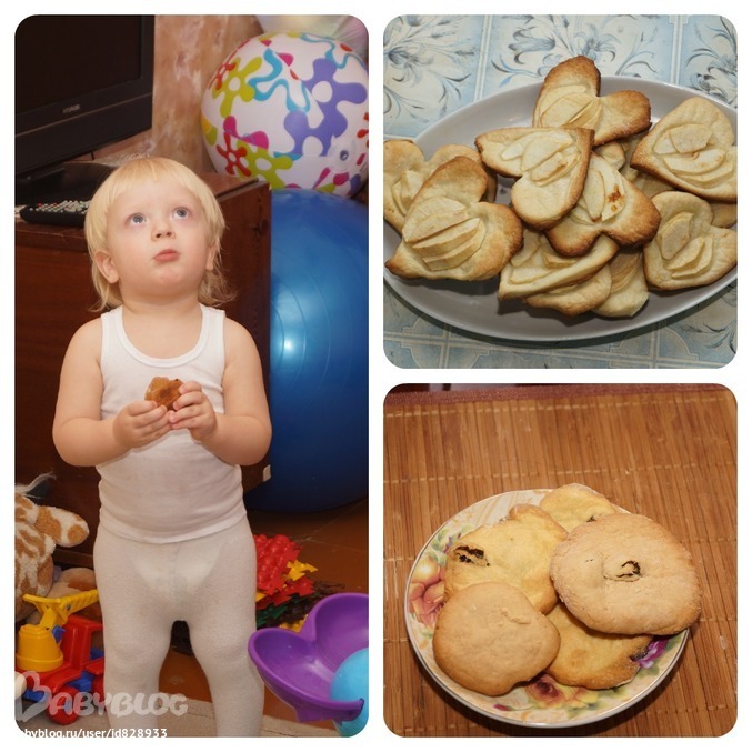 Еще мы немножко покулинарили. В день, посвященный кругу напекли круглых печененок из того, что было дома. При этом мама делала свое тесто, а папа со Степой свое, вот так вот всей семьей развлекались. Так получилось, что наша неделька выпала на день Св. Валентина, поэтому были сделаны слоеные булочки в виде сердца (тоже какая никакая фигура).