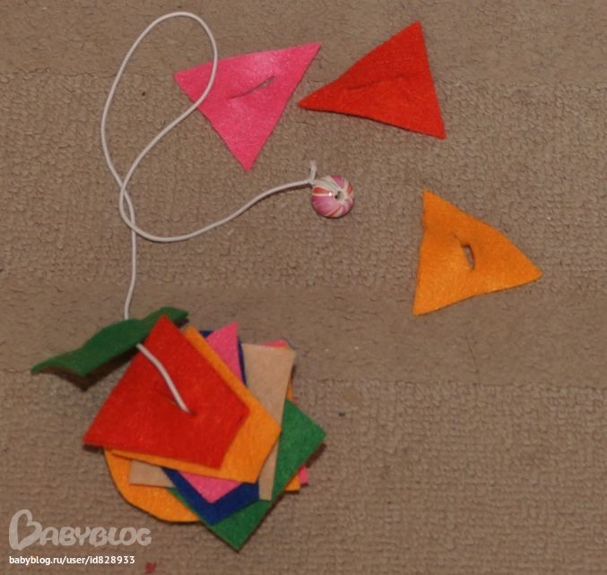 Опять же углядела у Светланы (http://www.babyblog.ru/user/lenta_cat/Suvimaca/0) и сделала вот такую геометрическую шнуровку из фетра. Степке совсем неинтересно оказалось, может чуть позже предложу еще разок.